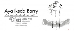 Come and see Aya’s work from Thirty Days Project, June 2011 at Kafka’s Coffee & Tea in Vancouver. Click for more information.