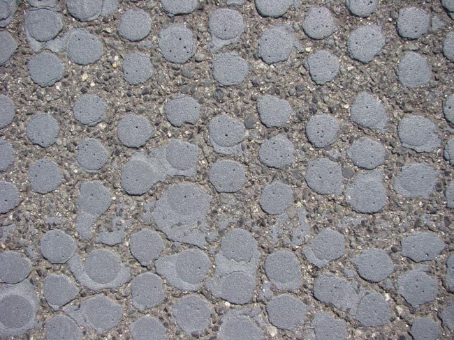 worn, cracked rubber dots on pavement