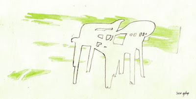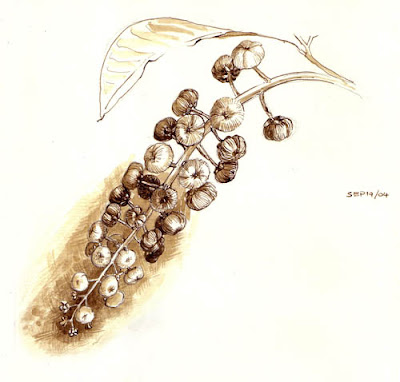 Drawn on the last page of the beautiful leather sketchbooks given to us at the Aegean Center. I wish I knew the name of this plant (and had brought back some seeds). They were all over the island of Paros and had wonderful textures. There are similar plants here in BC but they don’t grow as tall nor as thick.